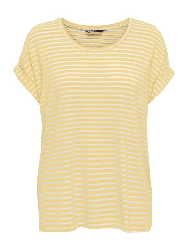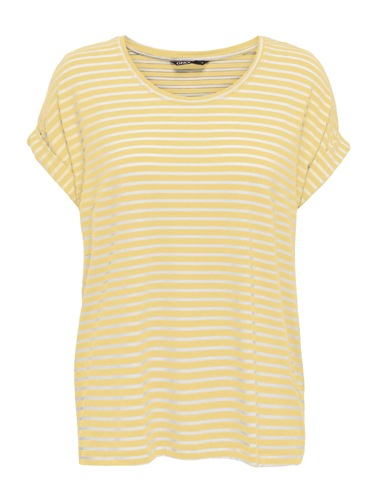 Dames T-shirt van Only;Model 'MOSTER';look: effen, Two Tone;Pasvorm: regular fit;Motief: gestreept;hals: ronde hals;mouwvorm: korte mouw;Mouwboord: gefixeerde omslag;materiaalverwerking: jersey;Materiaal: viscosemix