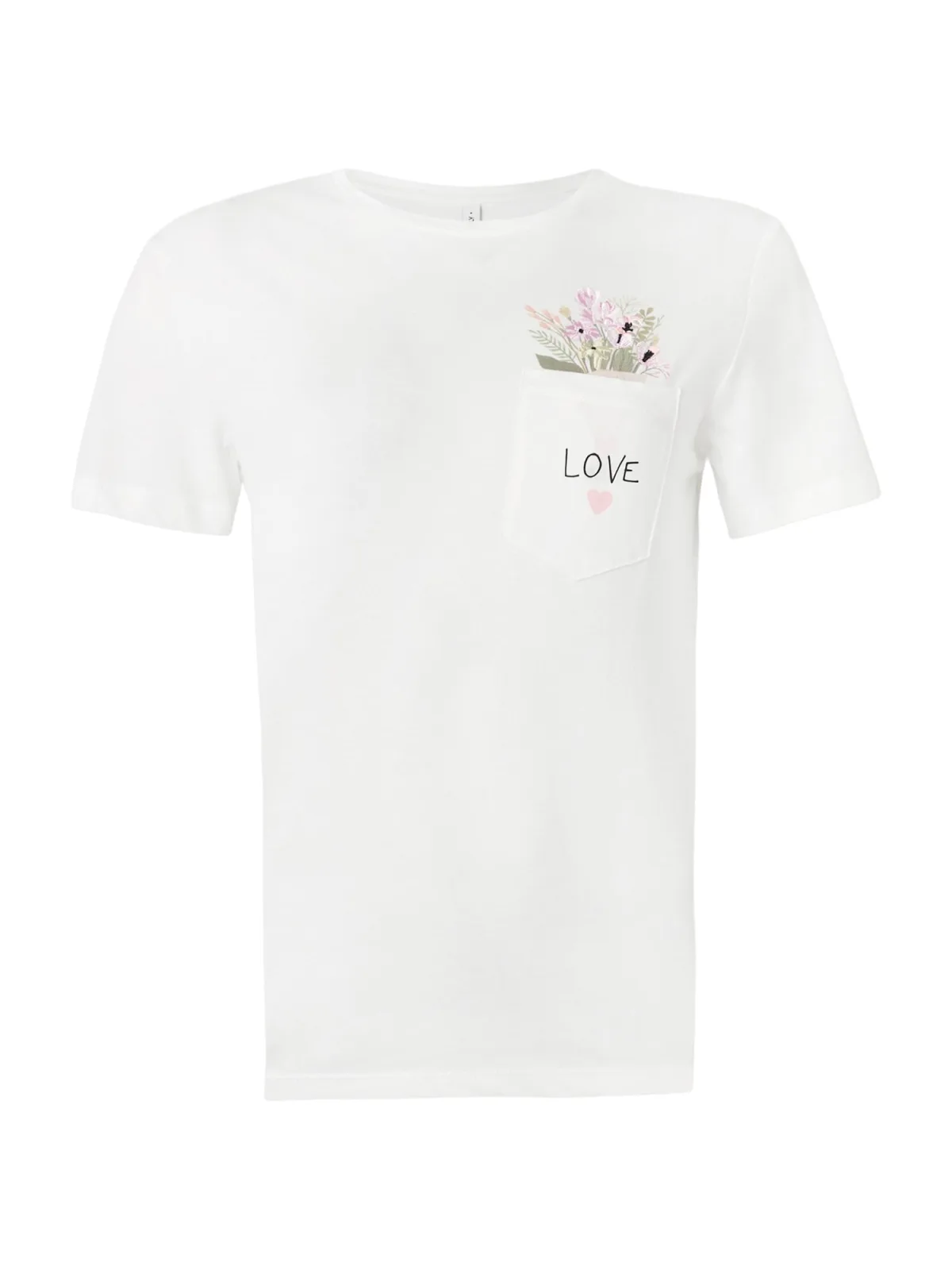 Dames T-shirt van 'Only';Model ‘Polly’;look: effen;Pasvorm: regular fit;Applicatie: statementprint, motiefstitching;hals: ronde hals;mouwvorm: korte mouw;Bijzondere kenmerken: binnenkant borstzak met verborgen boodschap;Tassen: borstzak;materiaalverwerking: jersey;Materiaal: puur biologisch katoen