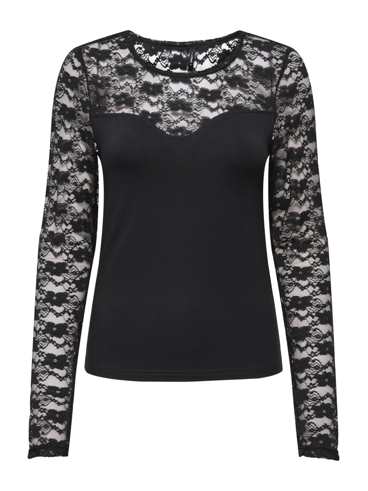 Design: Gevoerde zoom/rand, Rechte zoom; Materiaal: Jersey; Halstype: Ronde hals; Motief: Effen; Details: Kant; Extra's: Op staal naden, Met textuur, Voelt zacht aan; Pasvorm: Slanke pasvorm; Armlengte: Lange mouw; Lengte: Normale lengte