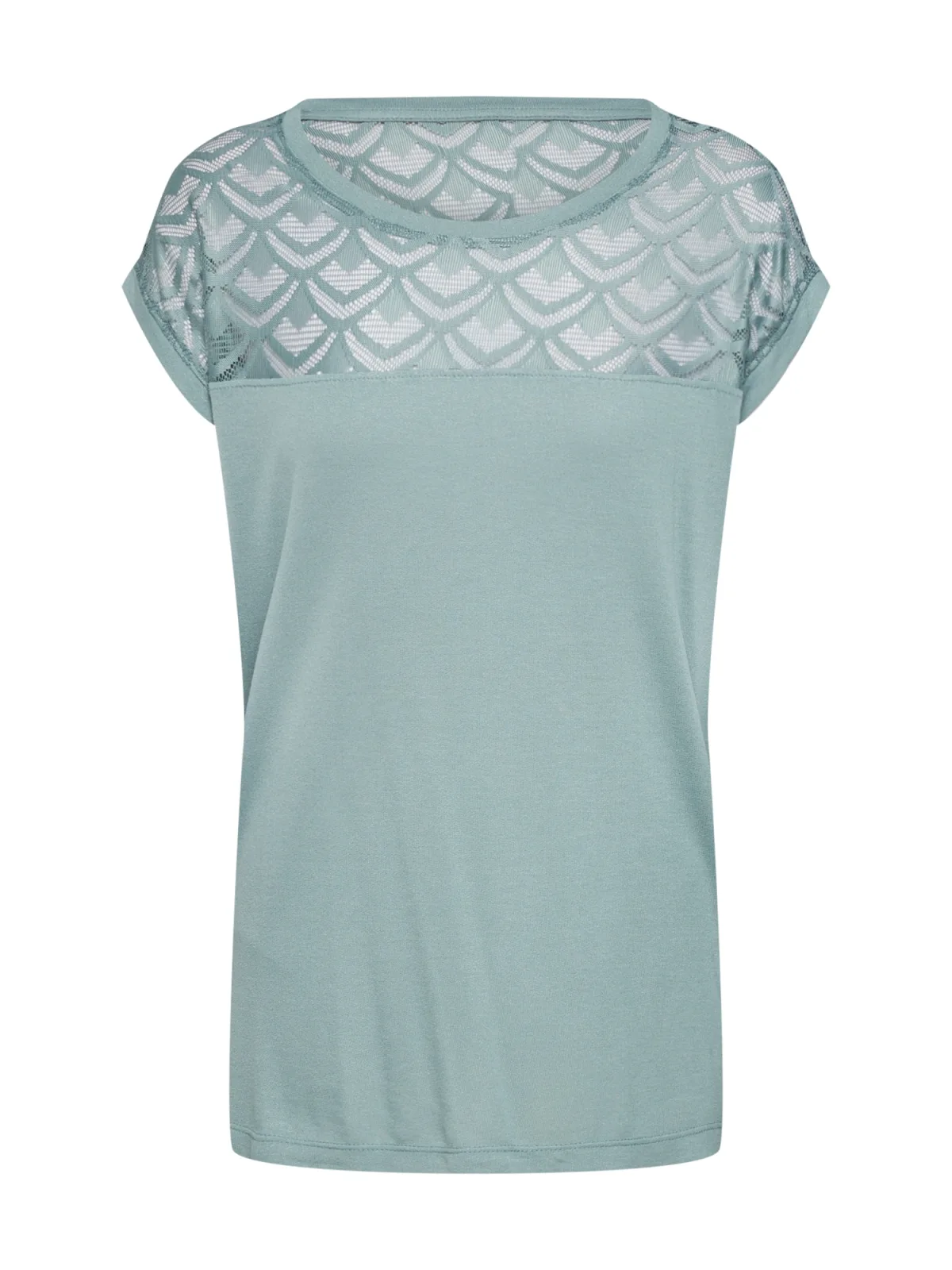 - T-shirt met korte mouwen- Details van de kant- Ronde hals- Lengte: 64 cm in maat M- Het model draagt maat S