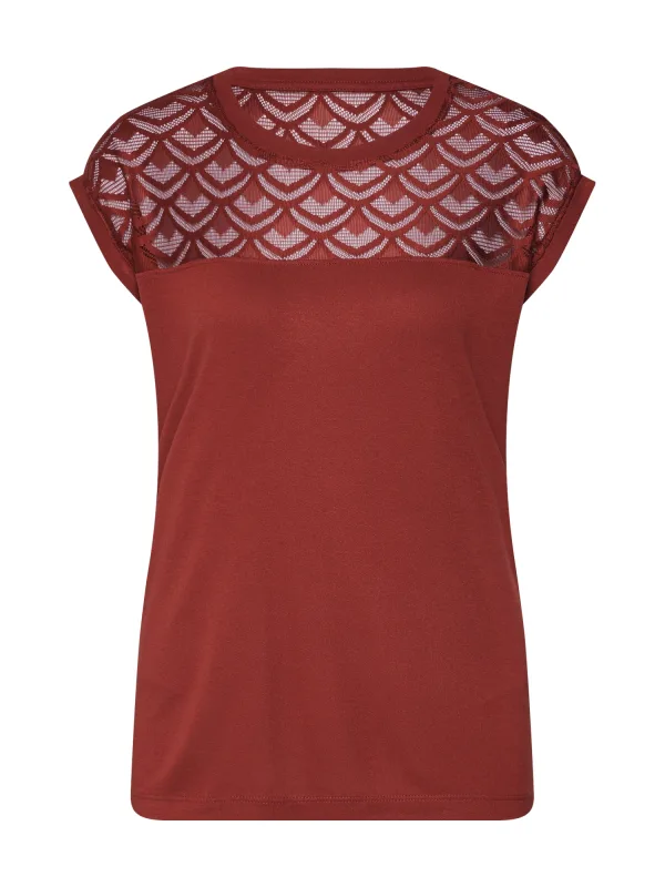 Design: Gevoerde zoom/rand, Gesneden mouw, Rechte zoom; Materiaal: Jersey; Halstype: Ronde hals; Motief: Effen; Details: Kant; Extra's: Licht transparant, Op staal naden, Voelt zacht aan; Pasvorm: Normale pasvorm; Armlengte: Kwartmouw; Lengte: Normale lengte
