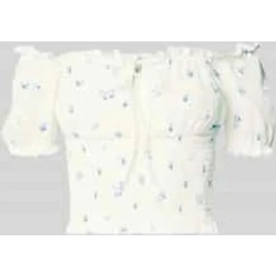 dames blousetop van Only;Model 'Hillary';look: all-over motief;pasvorm: slim fit;Lengte: kort;kraagmodel: zonder kraag;Patroon: bloemenmotief;hals: Henley;mouwvorm: korte mouw;mouwboord: plooien