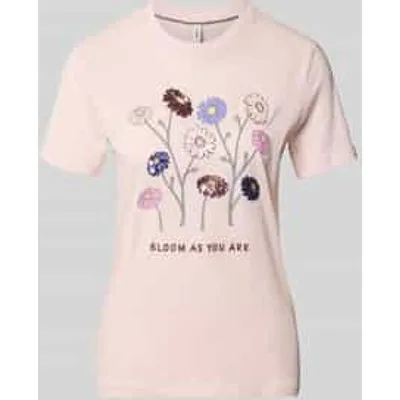 Dames T-shirt van Only;Model 'Kita';look: effen kleuren;pasvorm: slim fit;Applicatie: motiefprint, pailletten;Hals: ronde hals;mouwvorm: korte mouw;materiaalverwerking: jersey;Materiaal: puur katoen