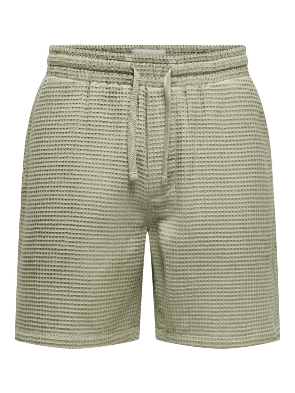 Sweatshorts van Only & Sons voor heren;Model 'Tel';Look: effen/all-over motief;Pasvorm: Regular fit;Boord: elastisch met tunnelkoord ;Zakken: steekzakken opzij, achterzak;Materiaalverwerking: Piqué;Materiaal: puur katoen;Bandwijdte bij maat M: 39 cm;Binnenbeenlengte bij maat M: 18 cm