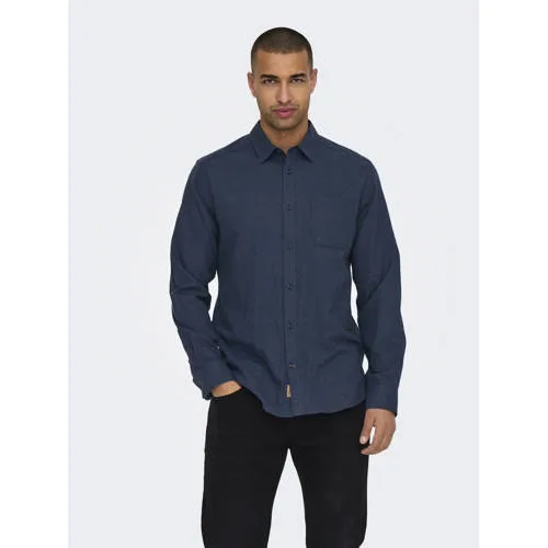 ONLY & SONS casual overhemd donkerblauw Prijzen