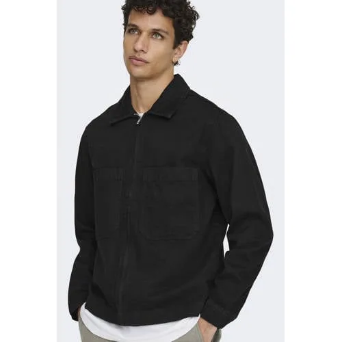 Ga voor een veelzijdige laag met de ONLY & SONS ONSCASSEL jas in de kleur black denim. Deze herenjas heeft het karakter van een spijkerjas, maar dan in een moderne uitvoering met ritssluiting. Ideaal voor het tussenseizoen, bijvoorbeeld in de lente, wanneer je graag iets lichts over je T-shirt of hoodie draagt.Zwarte denim jas met praktische details Gemaakt van stevig denim in de kleur black denim voor een rustige, alledaagse look Ritssluiting over de volledige lengte, handig om snel open en dicht te doen Klassieke kraag die netjes valt en goed combineert met zowel T-shirts als overhemden Lange mouwen voor extra bedekking op koelere dagen Borstzakken die zorgen voor het herkenbare spijkerjasgevoel en kleine spullen binnen handbereik houden Zonder voering, waardoor de jas licht aanvoelt en prettig is om in laagjes te dragenGeschikt voor laagjes en frisse lentedagenDeze black denim jas komt het beste tot zijn recht als lichte buitenlaag op dagen dat een dikke winterjas te warm is. Draag de jas open over een T-shirt voor een casual look of combineer met een sweater als het wat frisser is. Zo heb je een comfortabele jas voor droge dagen in het voor- en najaar.ONLY & SONS: moderne basics voor elke dagONLY & SONS ontwerpt kleding met een moderne pasvorm en toegankelijke stijl. De collecties zijn gemaakt voor dagelijks gebruik, met aandacht voor actuele trends en draagbaarheid. Zo voeg je eenvoudig nieuwe stukken toe aan je kledingkast die je vaak en op verschillende momenten kunt dragen.Een casual denim laag die moeiteloos meegaat van doordeweekse dag tot avond met vrienden.