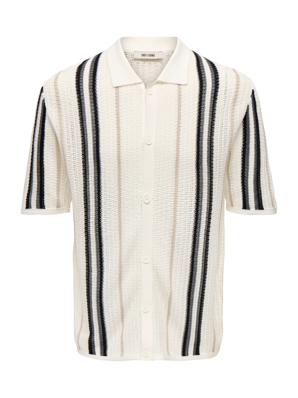 ONLY SONS regular gestreept casual overhemd gebreid ecru