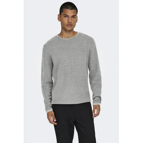 Deze ONLY & SONS ONSERIC trui heeft een regular fit en lange mouwen. De trui is gemaakt van 100% katoen met een ronde hals. Het ingebreide patroon geeft een rustige uitstraling.