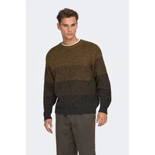 Gebreide herenpullover van Only & Sons;Model 'BIRK';Look: mêlee;Pasvorm: Relaxed fit;Motief: Ombré;Kraagmodel: Hoge ronde hals;Hals: ronde hals;Mouwvorm: lange mouwen;Mouwboord: geribd;Rompzoom: geribd;Materiaalverwerking: Knitwear;Materiaal: puur katoen