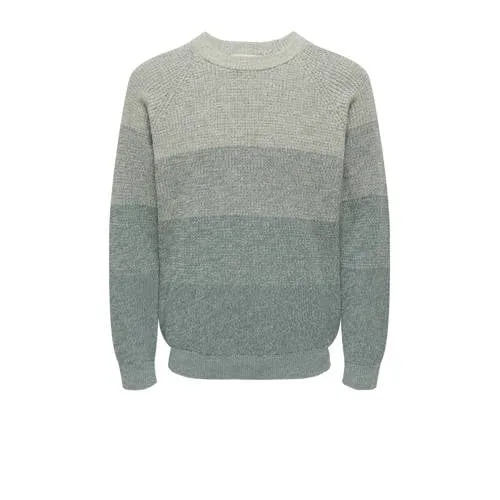 Gebreide herenpullover van Only & Sons;Model 'BIRK';Look: mêlee;Pasvorm: Relaxed fit;Motief: Ombré;Kraagmodel: Hoge ronde hals;Hals: ronde hals;Mouwvorm: lange mouwen;Mouwboord: geribd;Rompzoom: geribd;Materiaalverwerking: Knitwear;Materiaal: puur katoen