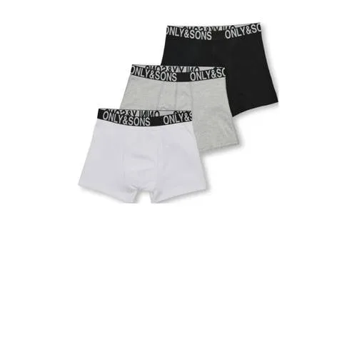 ONLY & SONS JUNIOR boxershort – set van 3 zwart/grijs/wit