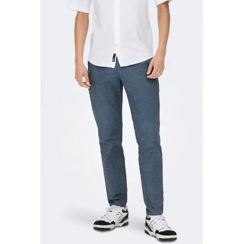 ONLY & SONS ONSMARK tapered chino met linnen donkerblauw