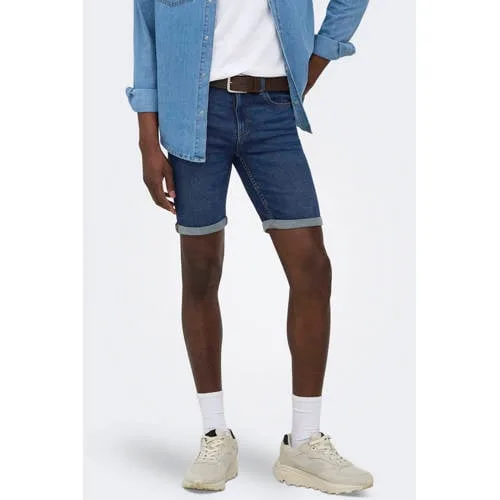 Voor ontspannen zomerdagen is een goede jeansshort altijd een goed idee. Deze denim short voor heren van ONLY & SONS in dark blue denim combineert een tijdloze look met praktisch draaggemak. De regular fit valt recht langs het been en sluit aan zonder strak te zitten. De diepe donkerblauwe wassing zonder slijtage details zorgt voor een rustige, verzorgde uitstraling die zowel casual als wat netter kan.Details die je elke dag waardeert Regular fit voor een comfortabele, rechtvallende pasvorm Dark blue denim zonder slijtage details voor een rustige, cleane look Rits- en knoopsluiting voor een betrouwbare en klassieke jeansafwerking Stevige stretchdenim die soepel meebeweegt bij elke stap Maatadvies: dit artikel valt normaal, je kunt je gebruikelijke maat bestellen Handwas volgens wasvoorschrift om de kleur en stof langer goed te houden Stijlnaam ONSPLY, een herkenbare basis binnen de collectie van ONLY & SONSGemakkelijk te combineren in jouw dagelijkse outfitsDe donkerblauwe kleur laat zich eenvoudig combineren met T-shirts, polo's of een dunne trui. Met sneakers ga je voor een sportieve look, terwijl sandalen of instappers het geheel een meer ontspannen stijl geven. Ideaal voor vakantie, een festival of een vrije dag in de stad.ONLY & SONS: moderne basics met een stoere twistONLY & SONS biedt eigentijdse herenmode met een focus op toegankelijke stijlen en draagbare pasvormen. Kleding die je makkelijk elke dag pakt, omdat het vertrouwd zit en past bij een moderne, casual garderobe.Een korte jeans die moeiteloos met je zomerplannen meebeweegt.