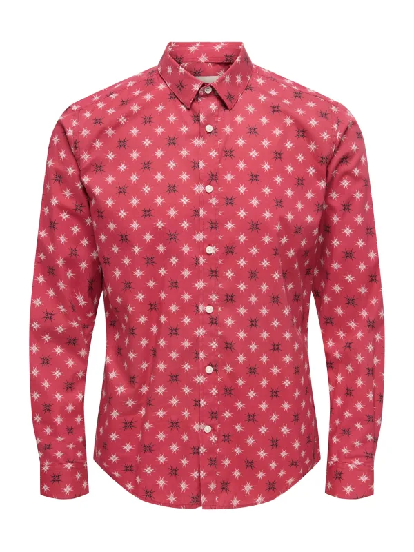 Specificaties: Only & Sons Overhemd ‘ONSElf Xmas’ cranberry / zwart / wit