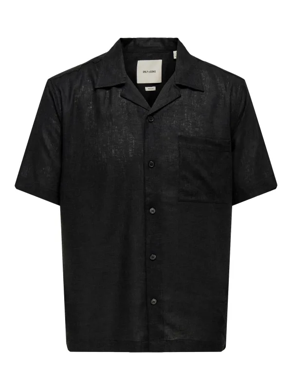 heren vrijetijdsoverhemd van Only & Sons;Model 'Laurence';look: effen;Pasvorm: relaxed fit;overhemdkraag: reverskraag;knoopsluiting: enkele knopenrij;mouwvorm: korte mouw;Tassen: borstzak;Materiaal: mix van linnen en viscose