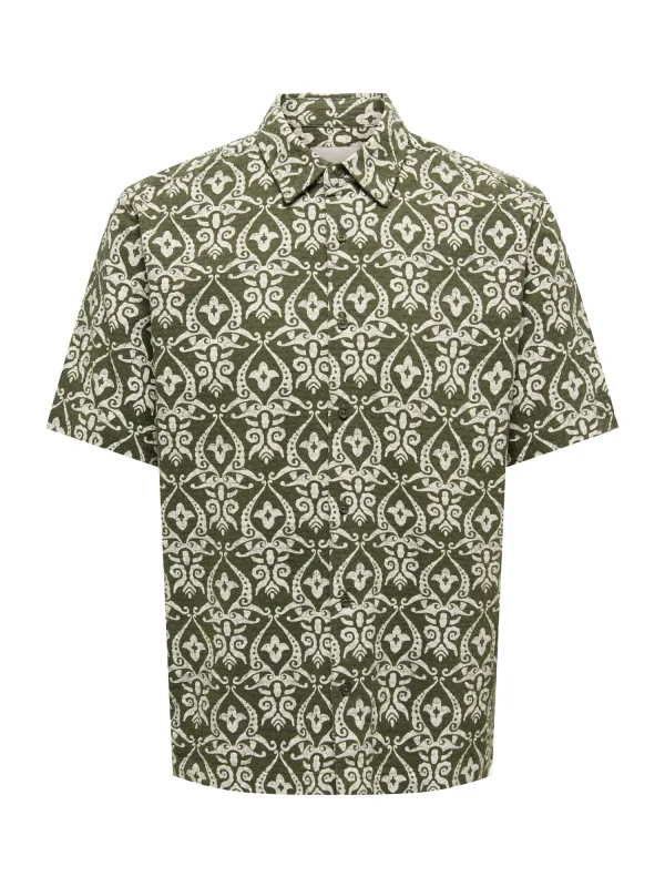 Specificaties: Only & Sons Overhemd ‘ONSSEA’ olijfgroen / offwhite