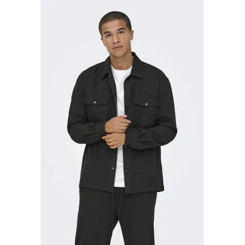 Overhemdjack van Only & Sons voor heren ;Model 'Mark';Look: mêlee;Pasvorm: Regular fit ;Kraagmodel: Platte kraag;Sluiting: Drukknopen;Details: Achterpas ;Mouwvorm: lange mouwen;Mouwboord: Manchet;Zakken: Borstzakken ;Materiaalverwerking: geborsteld