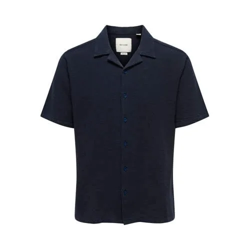 Ga voor een ontspannen, verzorgde look met dit donkerblauw casual overhemd voor heren van ONLY & SONS. De Dark Navy kleur is rustig en tijdloos, terwijl de korte mouwen en reverskraag een moderne, zomerse uitstraling geven. Het overhemd heeft een regular fit die comfortabel rondom het lichaam valt, zonder te strak of te wijd te zitten. Ideaal voor dagen waarop je er netjes uit wilt zien, maar je je toch vrij wilt bewegen.Praktische details voor dagelijks dragen Gemaakt van 55% katoen en 45% synthetische vezels, voor een zachte touch en vormvast draaggevoel Korte mouwen, prettig op warme dagen of onder een luchtig jasje Effen Dark Navy kleur, makkelijk te combineren met jeans, chino of korte broek Reverskraag voor een casual, open look Regular pasvorm voor een comfortabele, natuurlijke uitstraling Knoopsluiting over de hele lengte, handig aan en uit te trekken Wasbaar op 40 graden en warm strijkbaar (2 punten)Relaxte outfit voor elke dagDit geweven overhemd uit de Daily collectie is geschikt voor alledaagse momenten. Draag het open over een T-shirt voor een casual laagje of dichtgeknoopt op een chino voor een nette, maar ontspannen stijl.ONLY & SONS: moderne basics met karakterONLY & SONS richt zich op eigentijdse herenmode met aandacht voor pasvorm en draagbaarheid. De collecties bestaan uit moderne basics en trenditems die makkelijk te combineren zijn, zodat je zonder moeite een garderobe opbouwt die past bij jouw dagelijkse leven.Een veelzijdig overhemd waarmee je eenvoudig een rustige, verzorgde look creëert.