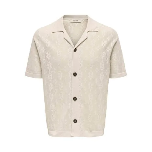 ONLY & SONS regular casual overhemd met ingebreid patroon beige Prijzen