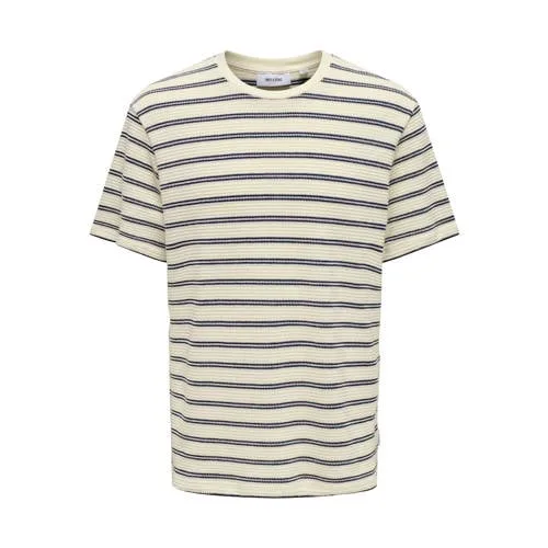 ONLY & SONS regular gestreepte T-shirt gebreid donkerblauw Prijzen