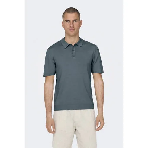 ONLY & SONS regular polo fijn gebreid grijsblauw