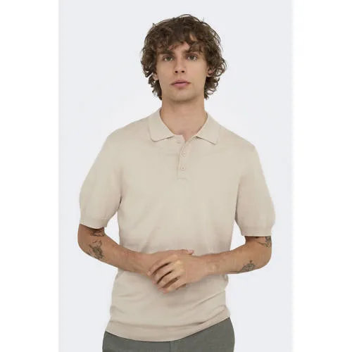 ONLY & SONS regular polo gebreid zand Prijzen
