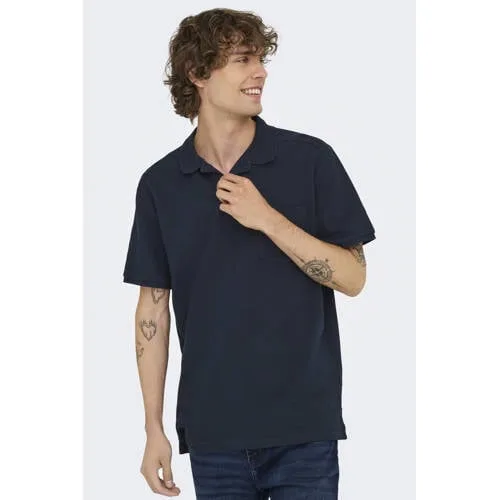 ONLY & SONS regular polo met textuur donkerblauw Prijzen