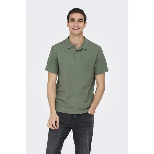 ONLY & SONS regular polo met textuur groen
