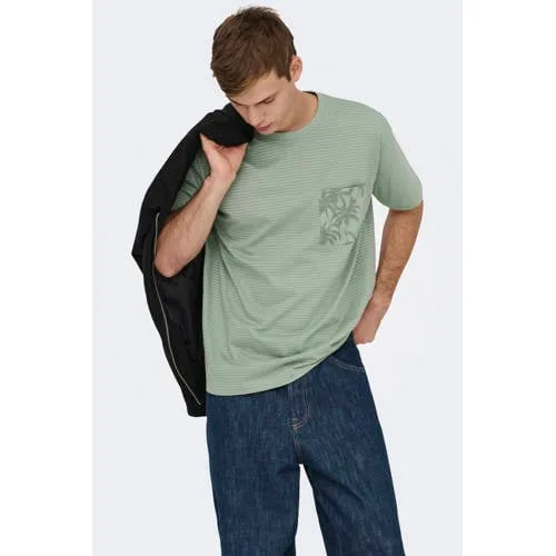 ONLY & SONS relaxed gestreept T-shirt groen