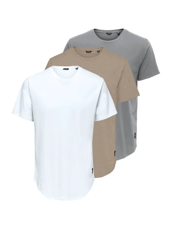 Design: Gevoerde zoom/rand, Ronde zoom, Nektape; Materiaal: Jersey; Halstype: Ronde hals; Motief: Mélange; Extra's: Label patch/label flag, Voelt zacht aan, Huidvriendelijk materiaal; Pasvorm: Losse pasvorm; Aantal: 3 Pack; Armlengte: Kwartmouw; Lengte: Lange pasvorm