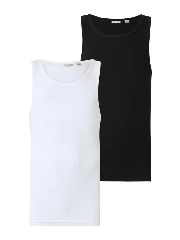 Design: Gevoerde zoom/rand, Rechte zoom, Ingelegde kraag; Materiaal: Jersey; Halstype: Ronde hals; Motief: Effen; Extra's: Op staal naden, Met textuur, Voelt zacht aan; Pasvorm: Normale pasvorm; Aantal: 2 Pack; Armlengte: Mouwloos; Lengte: Normale lengte