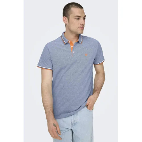ONLY & SONS slim fit polo ONSFLETCHER met logo blue denim