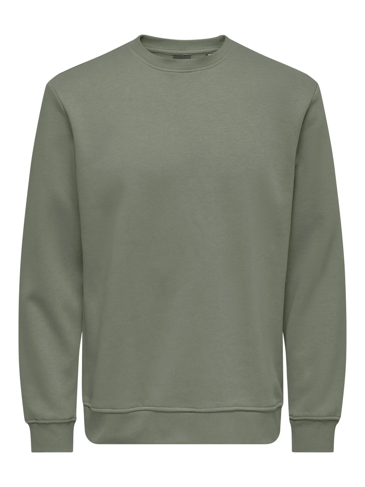 De ONLY & SONS sweater ONSCONNOR is een comfortabele basic voor elke dag. De trui heeft een regular fit, een ronde hals en lange mouwen, waardoor hij makkelijk te combineren is met je favoriete jeans of chino. De zachte sweatstof met katoentouch voelt prettig aan op de huid en maakt deze sweater geschikt voor zowel thuis als op kantoor. De kleur Castor Gray is een rustige grijs-groene tint die zorgt voor een moderne, ingetogen look.Kenmerken van de ONSCONNOR sweater Regular fit voor een ontspannen pasvorm Ronde hals met geribde afwerking voor extra draagcomfort Lange mouwen met geribde boorden die goed aansluiten Effen ontwerp zonder print voor een tijdloos karakter Zachte sweatstof die stevig aanvoelt en soepel meebeweegt Geen zakken voor een rustige, cleane uitstraling Wasbaar op 40 graden en warm strijkbaar, niet geschikt voor de droogtrommelElke dag makkelijk combinerenDeze sweater komt uit de Daily collectie en past goed in een garderobe voor alledag. Draag hem casual met een jeans en sneakers of wat netter met een chino en lage leren schoenen. Door de neutrale kleur is hij eenvoudig te stylen in verschillende looks.ONLY & SONS voor moderne basicsONLY & SONS richt zich op moderne mannen die houden van simpele, goed draagbare kleding met een eigentijdse uitstraling. De collecties bestaan uit toegankelijke items die makkelijk te combineren zijn en geschikt zijn voor dagelijks gebruik. Met deze sweater kies je voor een betrouwbaar kledingstuk dat snel een vaste plek in je kast krijgt.Een no-nonsense sweater die je zonder nadenken aantrekt op drukke dagen.