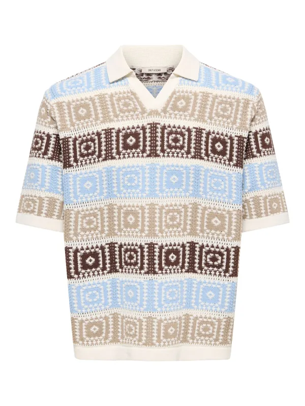 Specificaties: Only & Sons Trui ‘ONSBART’ beige / hemelsblauw / bruin / wit