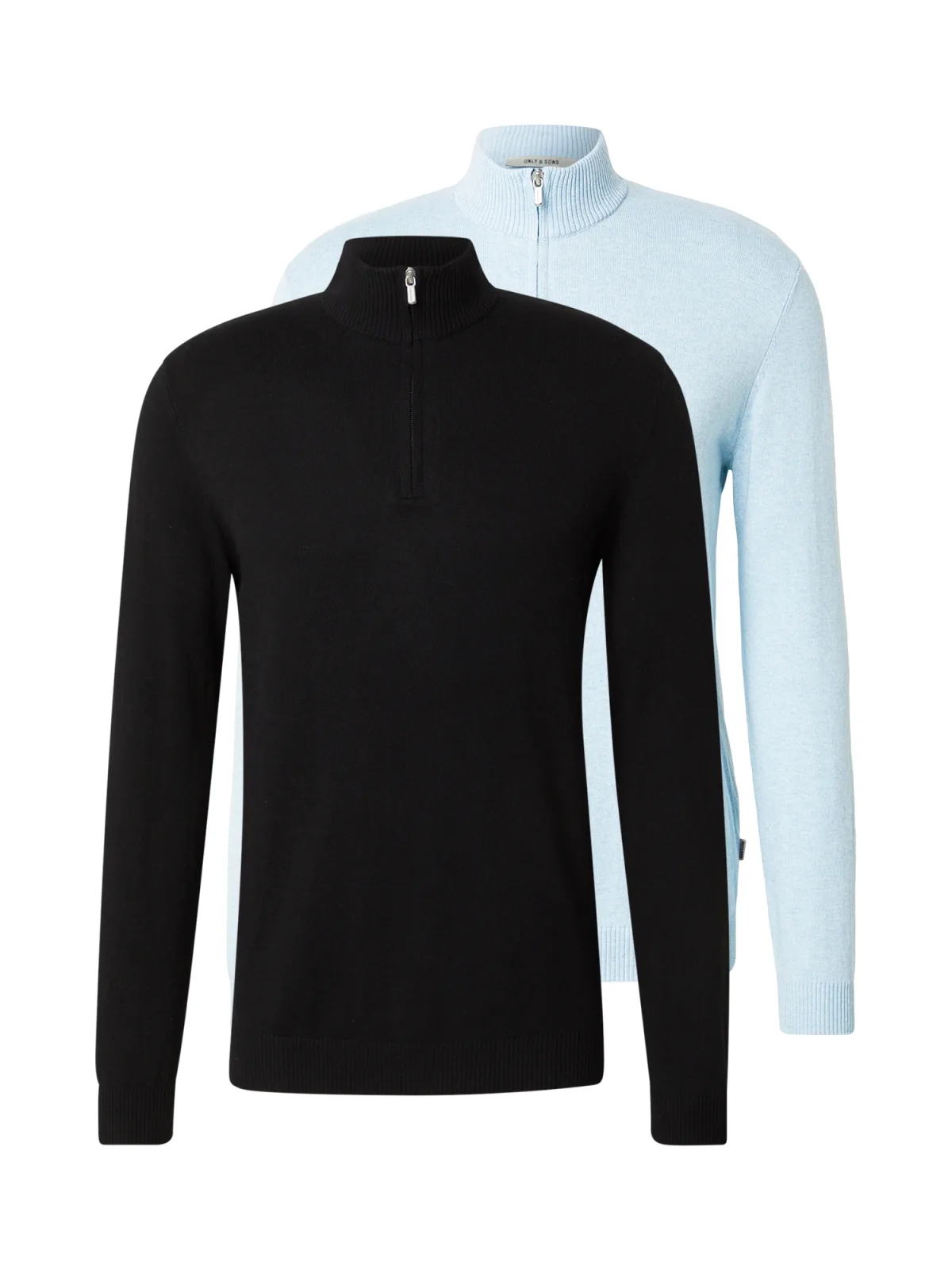 Design: Geribbelde kraag, Geribd ceintuurtje; Type sluiting: Ritssluiting; Materiaal: Knitwear; Halstype: Schipperskraag; Motief: Effen; Extra's: Met textuur, Voelt zacht aan; Pasvorm: Normale pasvorm; Aantal: 2 Pack; Armlengte: Lange mouw