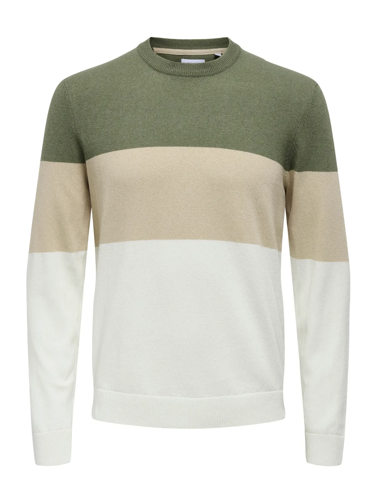 Only & Sons Trui ‘ONSRex’ beige / olijfgroen / wit