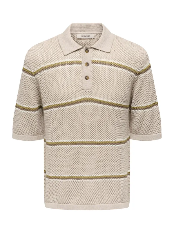 Design: Geribbelde kraag, Geribd ceintuurtje; Type sluiting: Knoopsluiting; Materiaal: Knitwear; Halstype: Polokraag; Motief: Gestreept; Extra's: Met textuur, Voelt zacht aan; Pasvorm: Losse pasvorm; Armlengte: Halve mouw