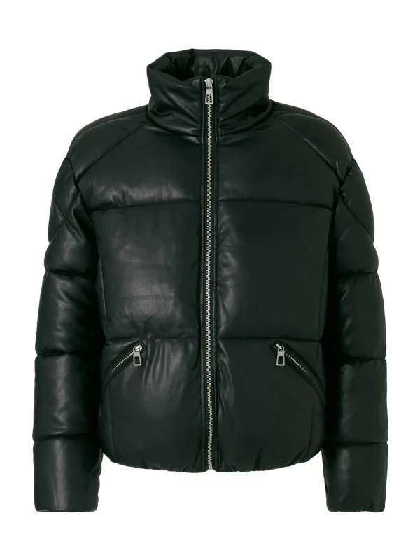 Design: Staande kraag, Ritszakken aan de zijkant; Type sluiting: Ritssluiting; Type jas: Gewatteerde jas; Voering: Licht gevoerd; Materiaal: Imitatieleder; Motief: Effen; Extra's: Gecoat, Op staal naden; Pasvorm: Normale pasvorm