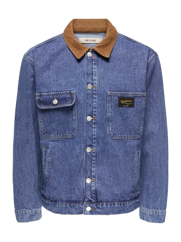 Specificaties: Only & Sons Tussenjas ‘ONSTIMBER’ blauw denim / bruin