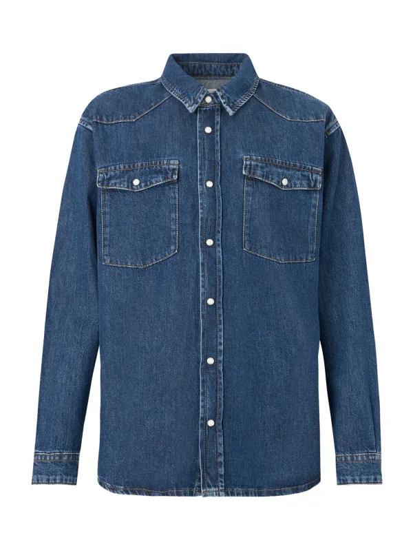 Design: Raglanmouwen, Borstzak; Type sluiting: Drukknoop; Voering: Niet gevoerd; Materiaal: Denim; Motief: Effen; Extra's: Gewassen effect, Stevige stof; Pasvorm: Normale pasvorm