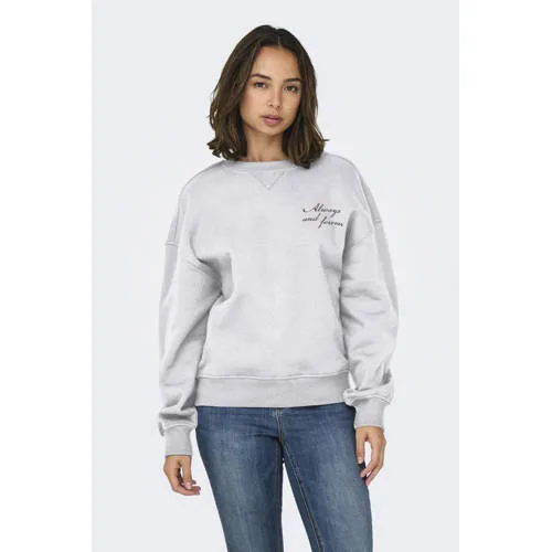 Deze trui van ONLY heeft een halterkraag en lange mouwen. De print met tekst staat op de voorkant, de pasvorm is recht en je draagt deze trui makkelijk de hele dag.