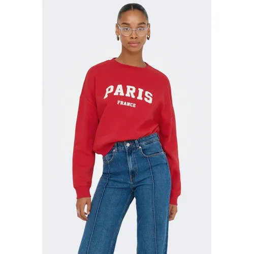 Deze sweater voor dames van ONLY is gemaakt van een sweatstof en heeft een tekstopdruk. Het model heeft een ronde hals en lange mouwen.details van deze sweater:stijlnaam: ONLSWEAT
