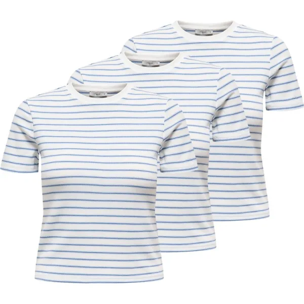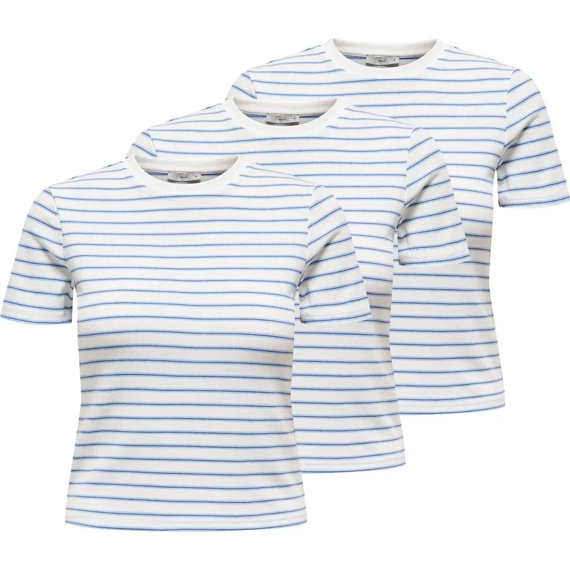 ONLY T-shirt voor dames Set van 3. Gestreepte T-shirt met korte mouwen, ronde hals en geribde structuur. Gemakkelijk te combineren en slim fit.