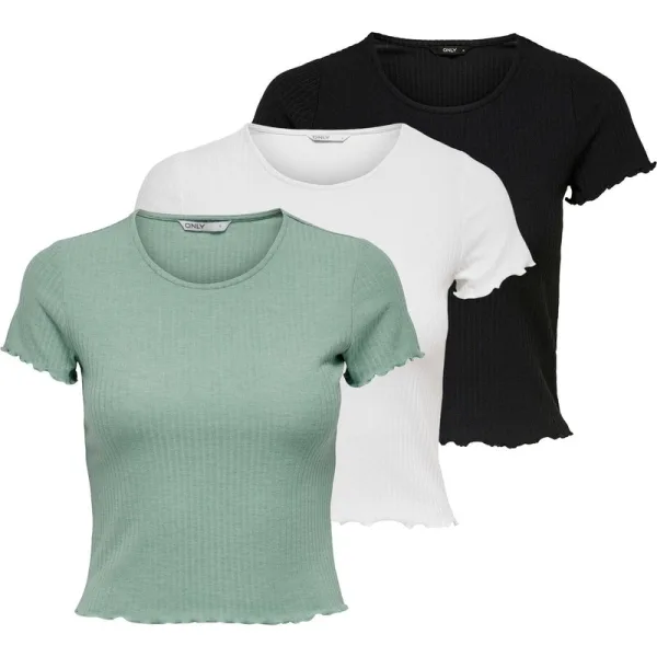 ONLY Basic T-shirt voor dames Set van 3. Effen cropped shirt met korte mouwen, ronde hals en ruchesdetails. Perfect voor dagelijks gebruik.