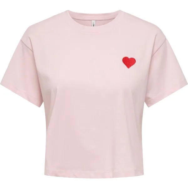 ONLY T-shirt voor dames. Effen shirt met korte mouwen, ronde hals en cropped model. Zacht, ademend katoen.