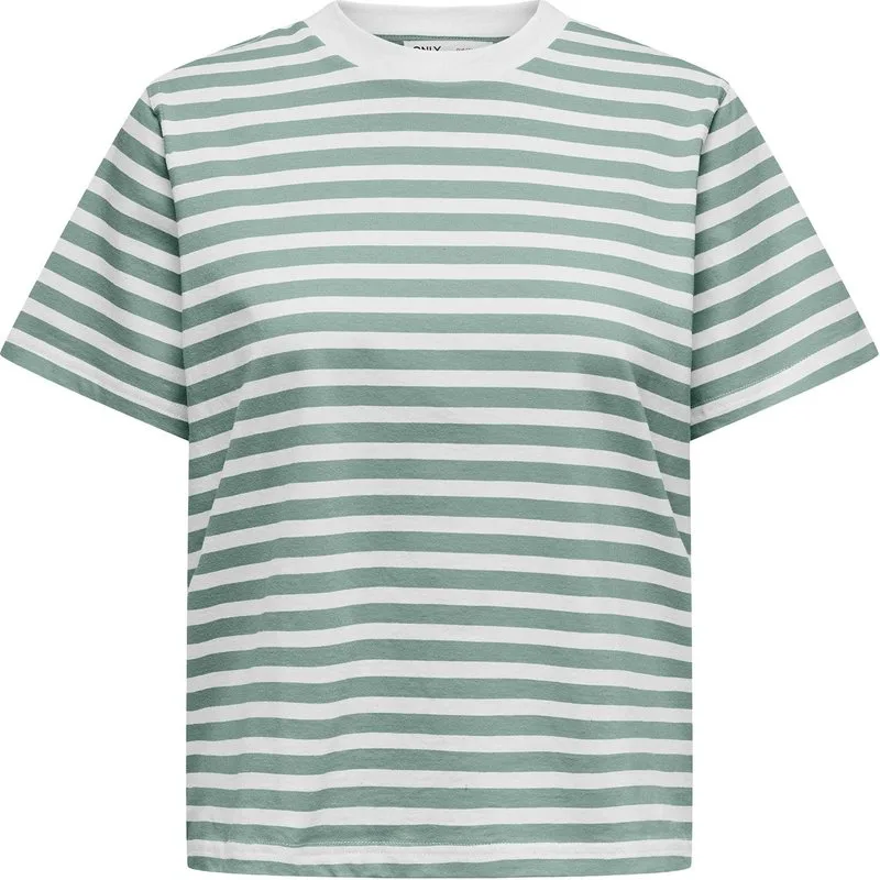ONLY T-shirt voor dames. Gestreept shirt met korte mouwen, ronde hals en vleermuismouwen. Zacht, ademend materiaal.
