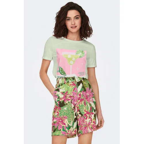 Breng kleur in je dagelijkse looks met dit ONLY T-shirt dames in lichtgroen met roze details. De frisse kleurcombinatie en speelse print maken het een praktisch basisitem voor je garderobe in het voorjaar en de zomer. Gemaakt van 100% katoen voelt het T-shirt zacht en luchtig aan op je huid, ideaal voor dagen waarop je de hele dag onderweg bent.Luchtige basic met opvallende print Lichtgroene basis met roze printopdruk voor een vrolijke, moderne uitstraling Gemaakt van 100% katoen, wat prettig draagt en goed ademt Korte, rechte mouwen voor een casual en toegankelijke pasvorm Ronde hals die mooi aansluit zonder te strak te zitten Dagelijkse 'daily' collectie, geschikt voor alledaagse outfits Eén T-shirt per verpakking, handig als losse basic in je kastGemakkelijk te stylen in jouw dagelijkse outfitsDit lichtgroene T-shirt is geschikt voor je standaard garderobe. Combineer het met een jeans en sneakers voor een relaxte dag, of draag het in een high waist rok met sandalen als je iets gekleder wilt. De rechte mouwen en ronde hals zorgen voor een vorm die je eenvoudig onder een vest of denim jack draagt.ONLY, toegankelijke basics voor elke dagONLY staat bekend om kleding die inspeelt op de laatste trends, maar toch toegankelijk blijft. De collecties draaien om draagbare styles die je makkelijk combineert en het hele seizoen door pakt. Met dit T-shirt kies je voor een bekend merk dat comfort en een eigentijdse uitstraling samenbrengt.Een licht T-shirt in een frisse kleur dat je zonder moeite onderdeel maakt van je dagelijkse outfits.