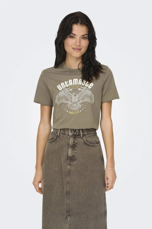 ONLY T-shirt ONLLUCY met printopdruk lichtbruin Prijzen