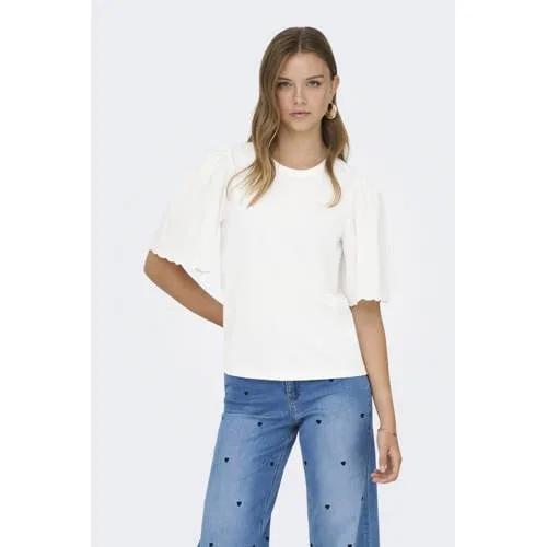 Dit witte ONLY T-shirt dames is ontworpen als een praktische basic voor je garderobe. Model 'ONLVERONIKA' heeft een rustige, effen look en past daardoor makkelijk bij je dagelijkse outfits. Het T-shirt is gemaakt van 100% katoen en voelt zacht en luchtig aan op de huid, prettig voor lange dagen op kantoor, onderweg of thuis.Luchtig T-shirt met wijde mouwen Gemaakt van 100% katoen voor een ademend en comfortabel gevoel Witte kleur met effen design, eenvoudig te combineren met jeans, rok of short Wijde halve mouwen voor een relaxte pasvorm rond de armen Ronde hals die mooi aansluit zonder strak te zitten Daily collectie, ideaal voor alledaags gebruik in het voorjaar en de zomer Los te dragen of in de taille te stoppen voor een andere lookElke dag opnieuw makkelijk te stylenDit T-shirt past goed bij een rechte jeans en sneakers, maar ook bij een soepelvallende rok en sandalen. De wijde mouwen geven net wat extra ruimte en zorgen voor een luchtig gevoel, terwijl de ronde hals het model rustig houdt.ONLY: modieuze basics voor elke dagONLY staat bekend om moderne, toegankelijke mode met aandacht voor pasvorm. De Daily collectie biedt kledingstukken die je vaak pakt, omdat ze prettig dragen en makkelijk te combineren zijn met wat je al hebt.Een effen basic waar je het hele seizoen gemakkelijk naar grijpt.
