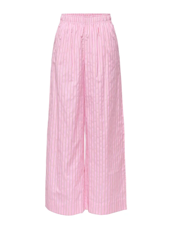 Design: Gevoerde zoom/rand, Elastische taille/zoom; Materiaal: Gerecycled materiaal; Motief: Gestreept; Details: Gedrapeerd; Extra's: All-over patroon, Gladde stof; Lengte: Lang/maxi; Pasvorm: Wide leg; Taillehoogte: Mid waist